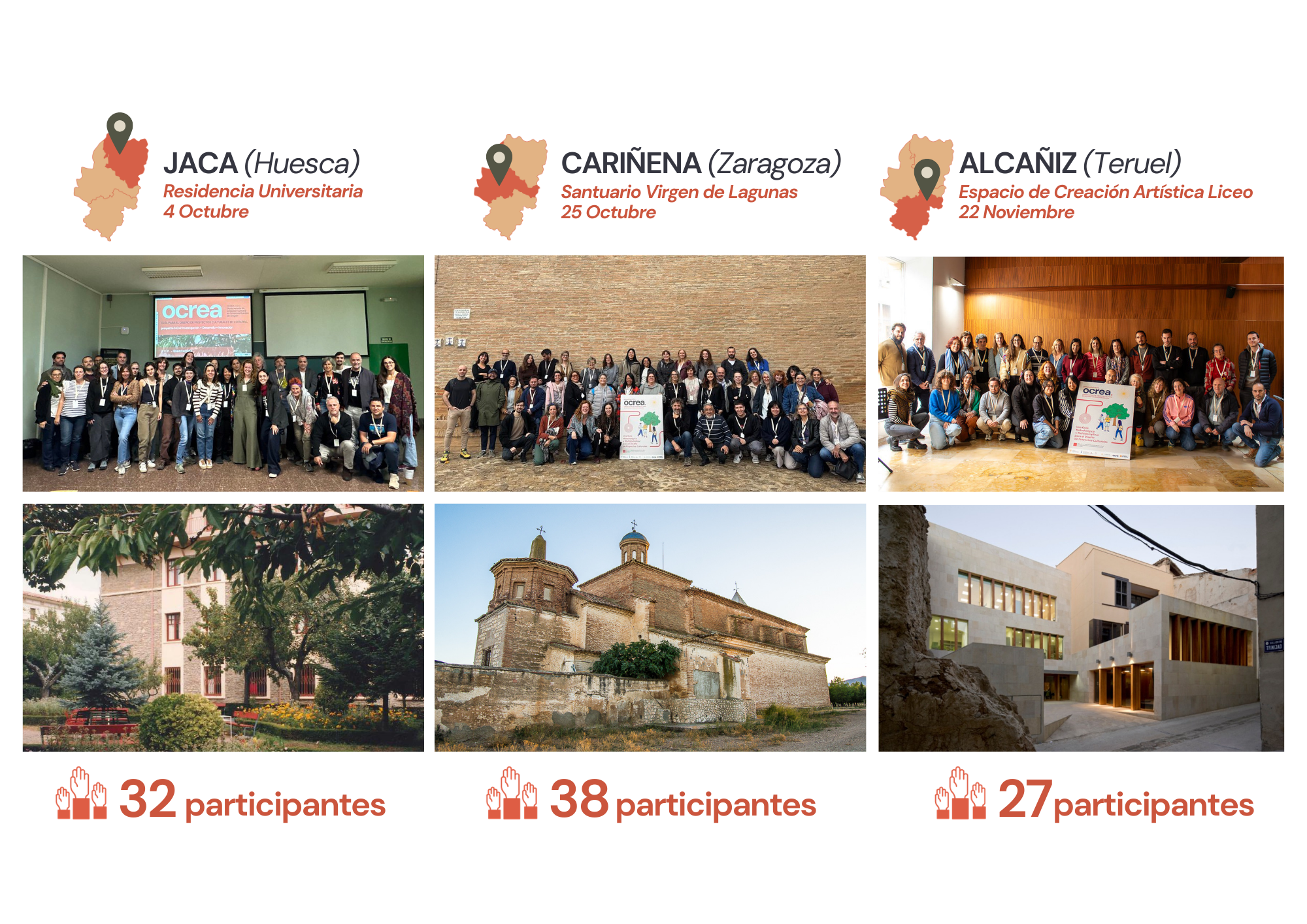 En el marco del proyecto OCREA I+D+i (2024–2026) ya hemos realizado talleres territoriales en Jaca, Cariñena y Alcañiz, recogiendo aprendizajes que alimentan una Guía pública actualmente en elaboración.