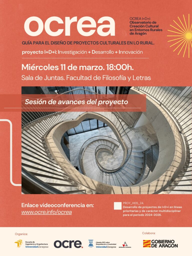 OCREA nace de la colaboración entre la Asociación Cultural OCRE y la Universidad de Zaragoza, con el objetivo de conectar cultura e investigación aplicada para mejorar cómo se diseñan, y se sostienen, los proyectos culturales en el medio rural.